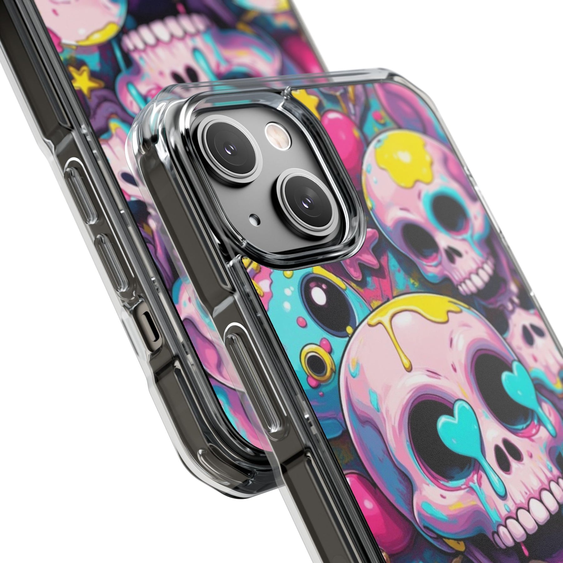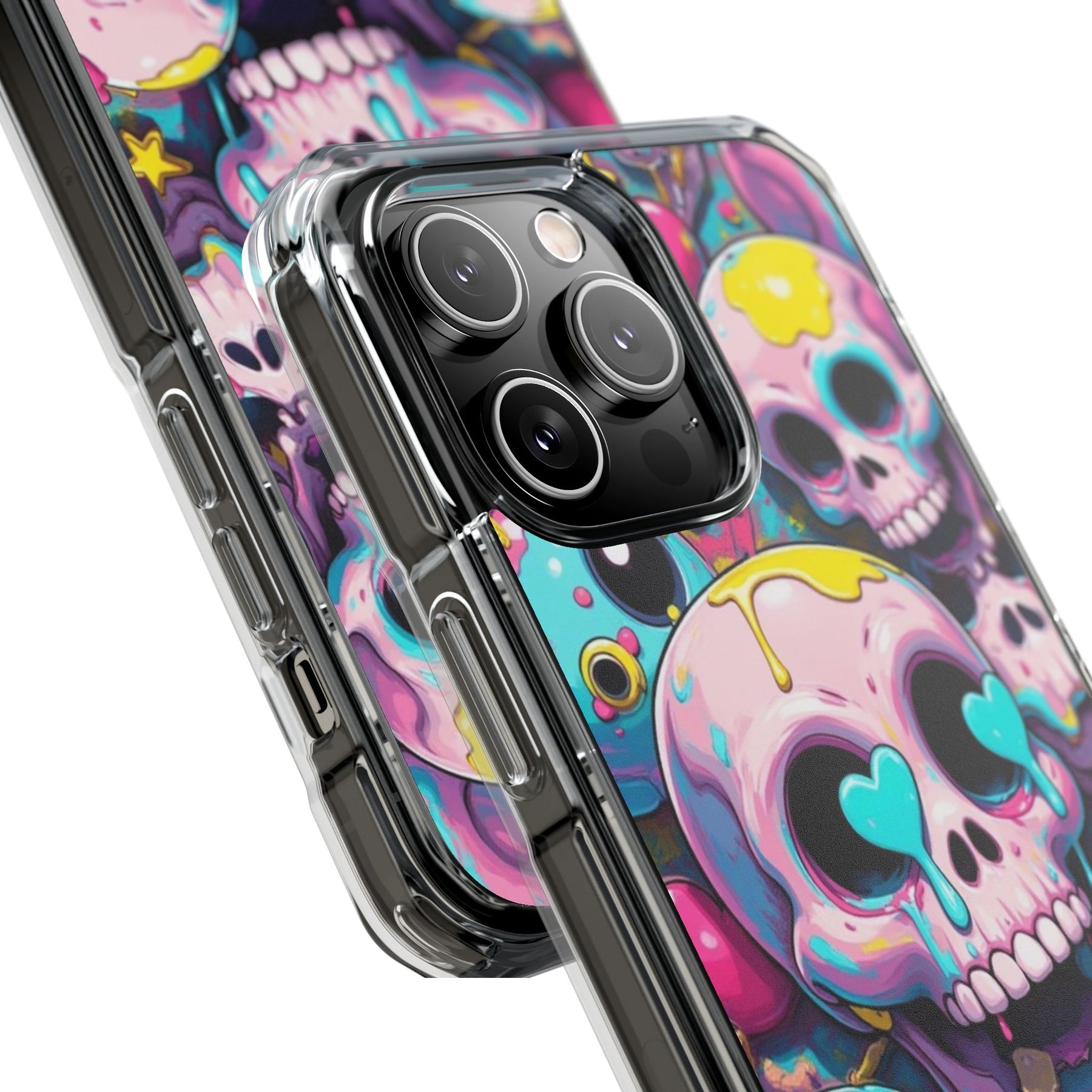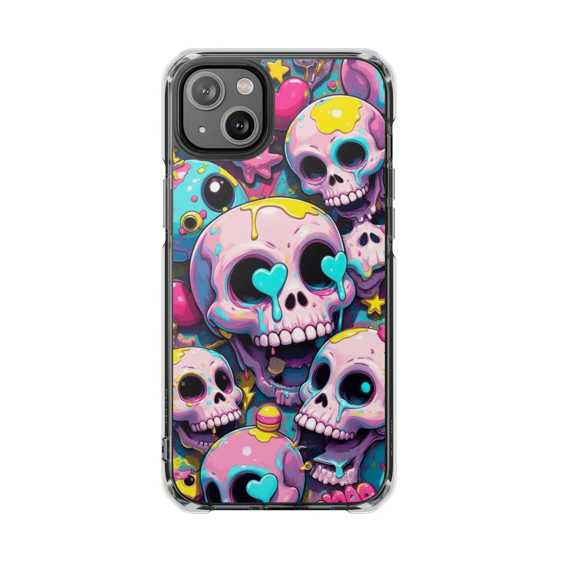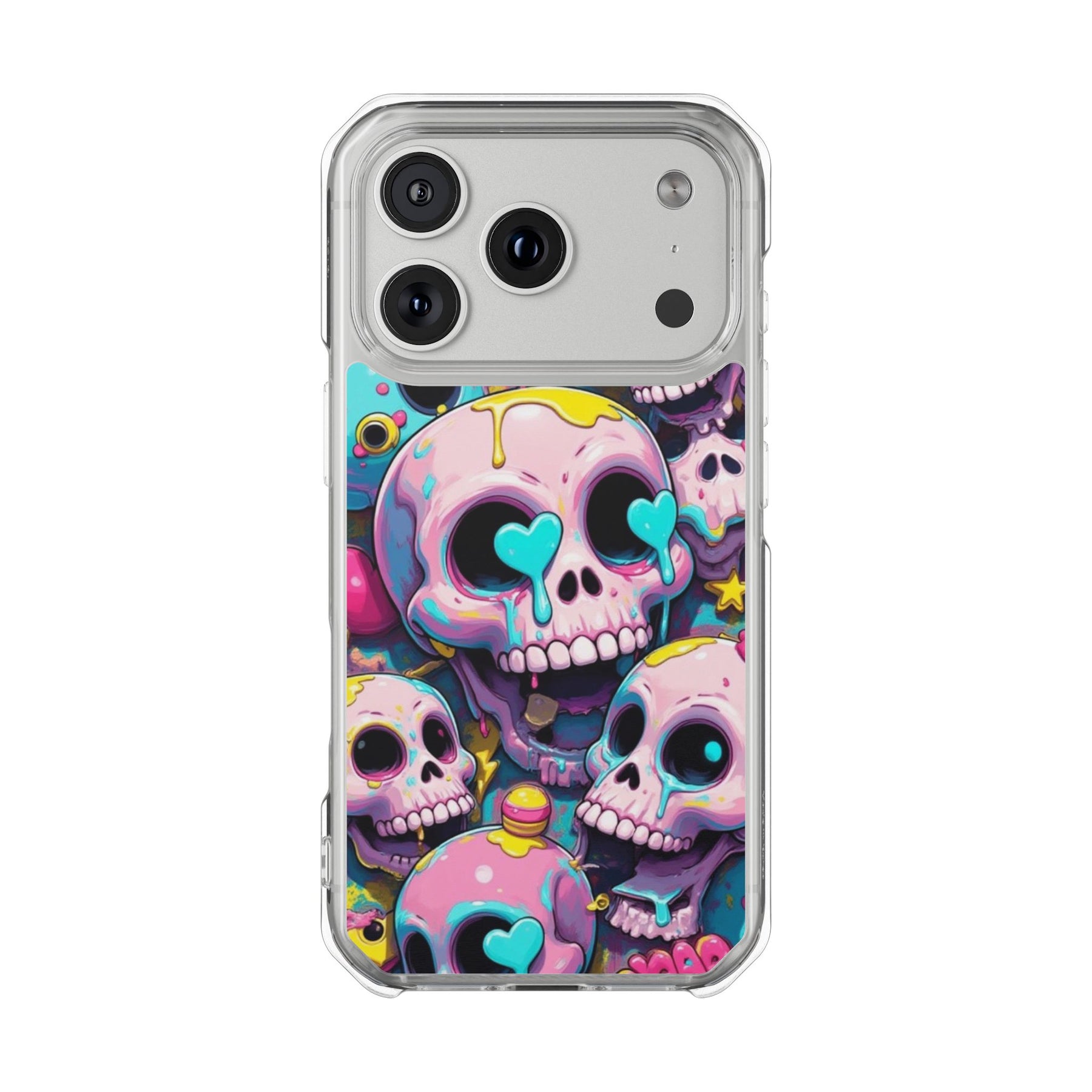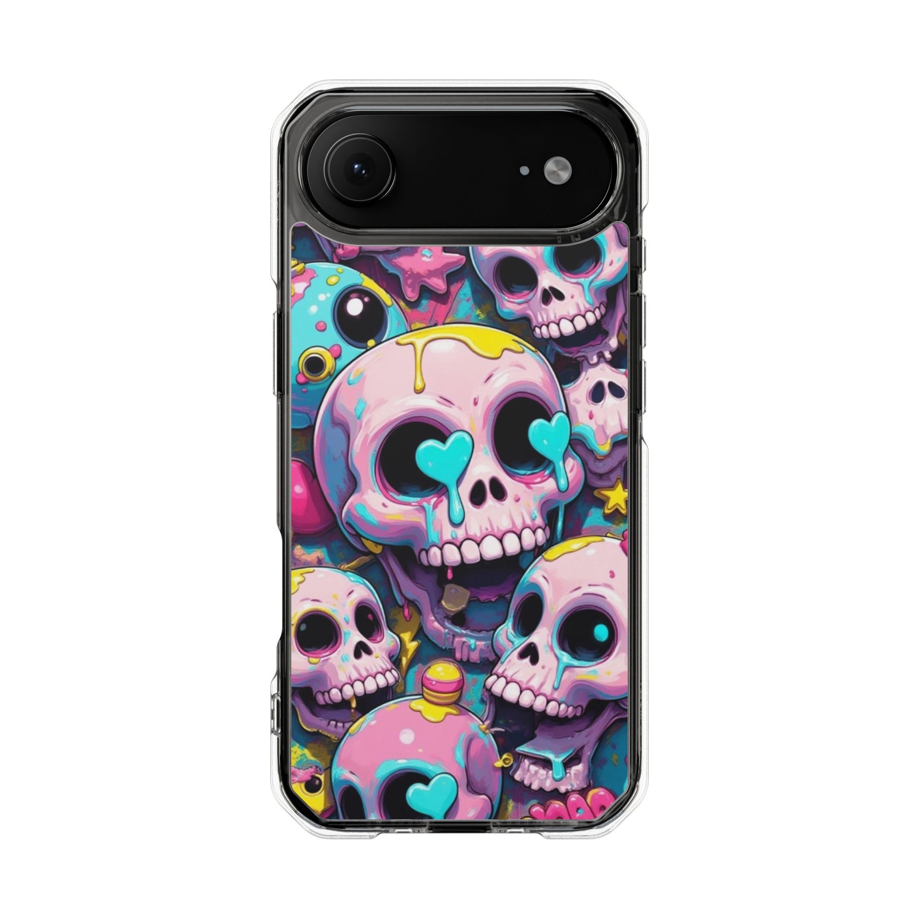 スマホを守るだけじゃ物足りない。カラフルKAWAIIスカルが、毎日を一気にポップにする MagSafe対応クリアマグネットiPhoneケースです。