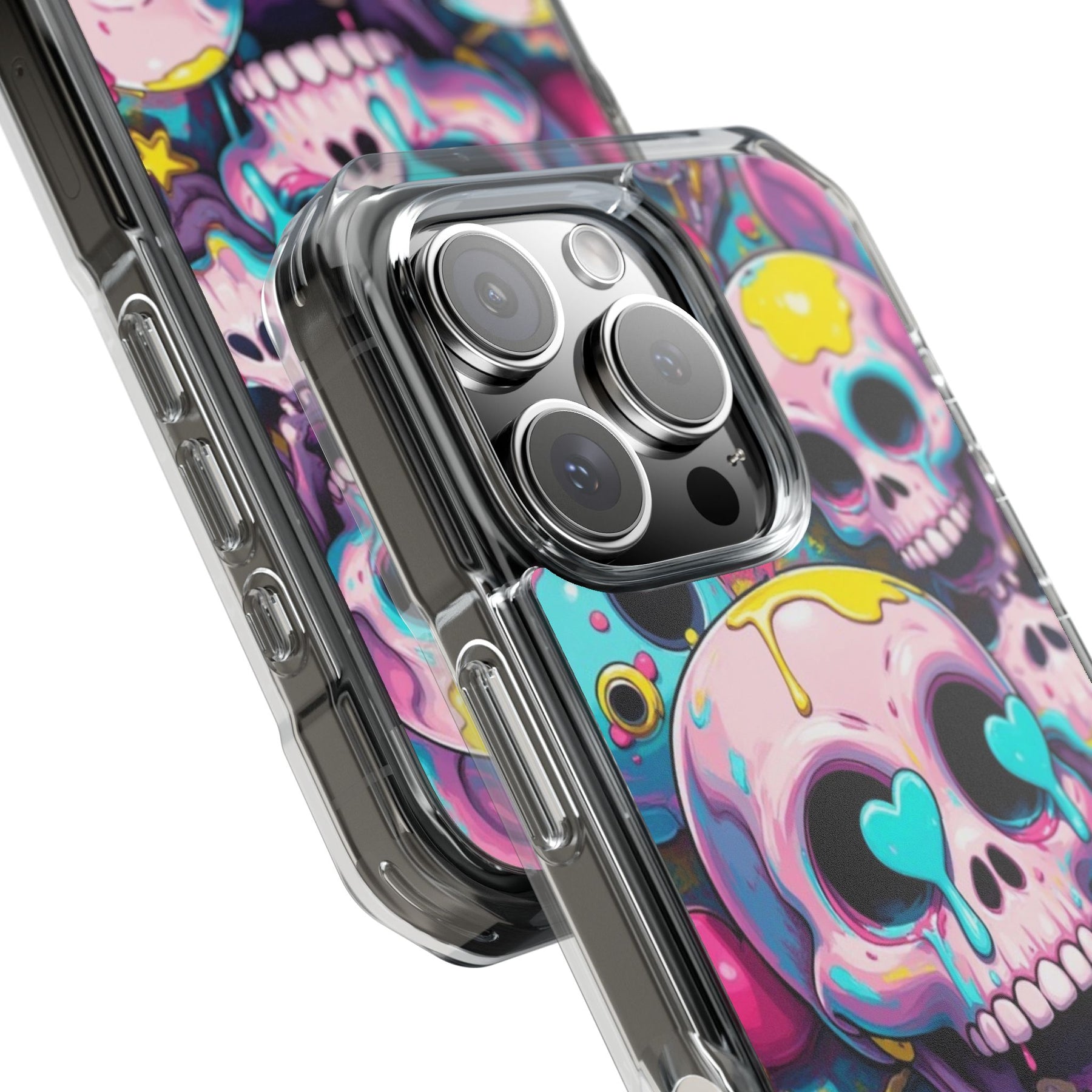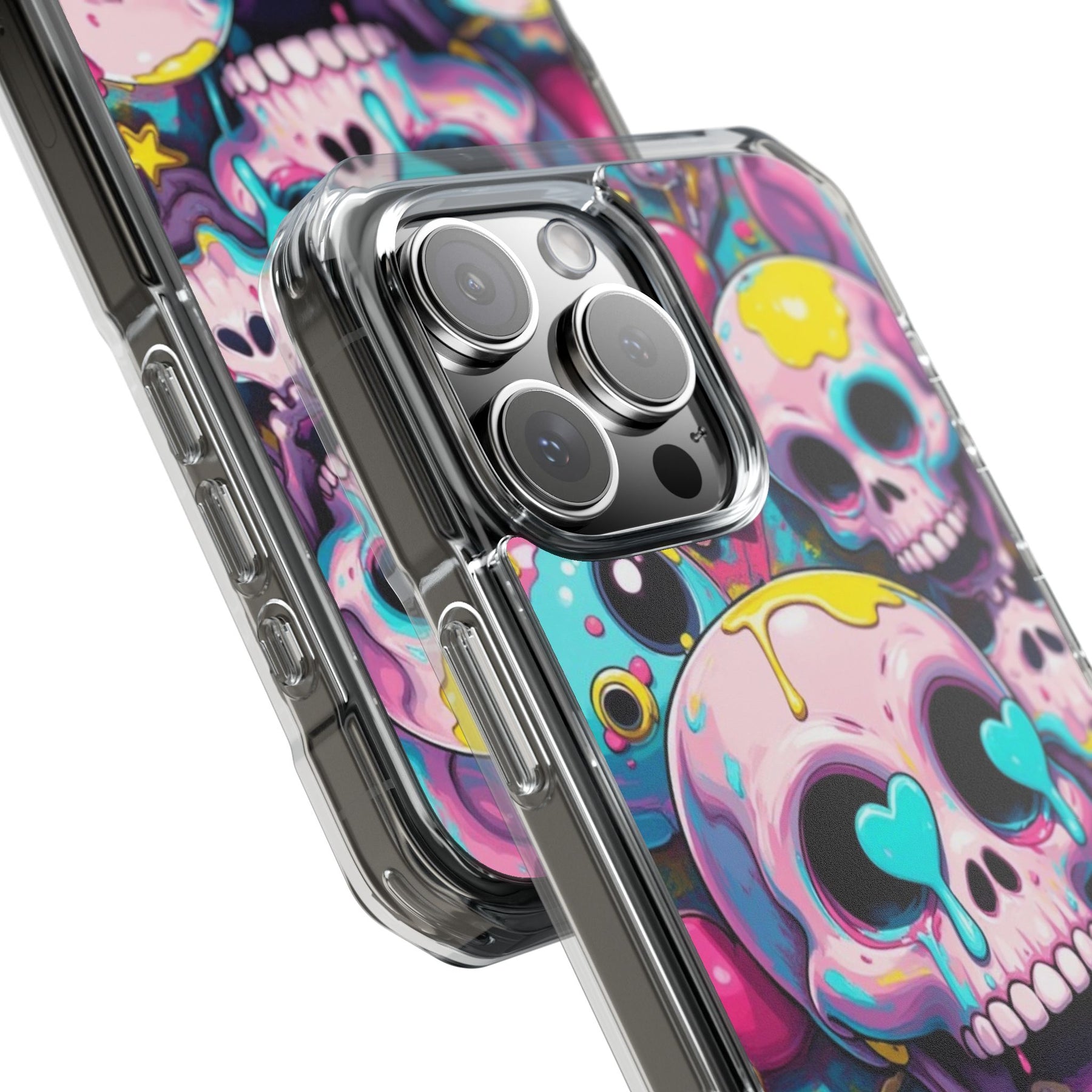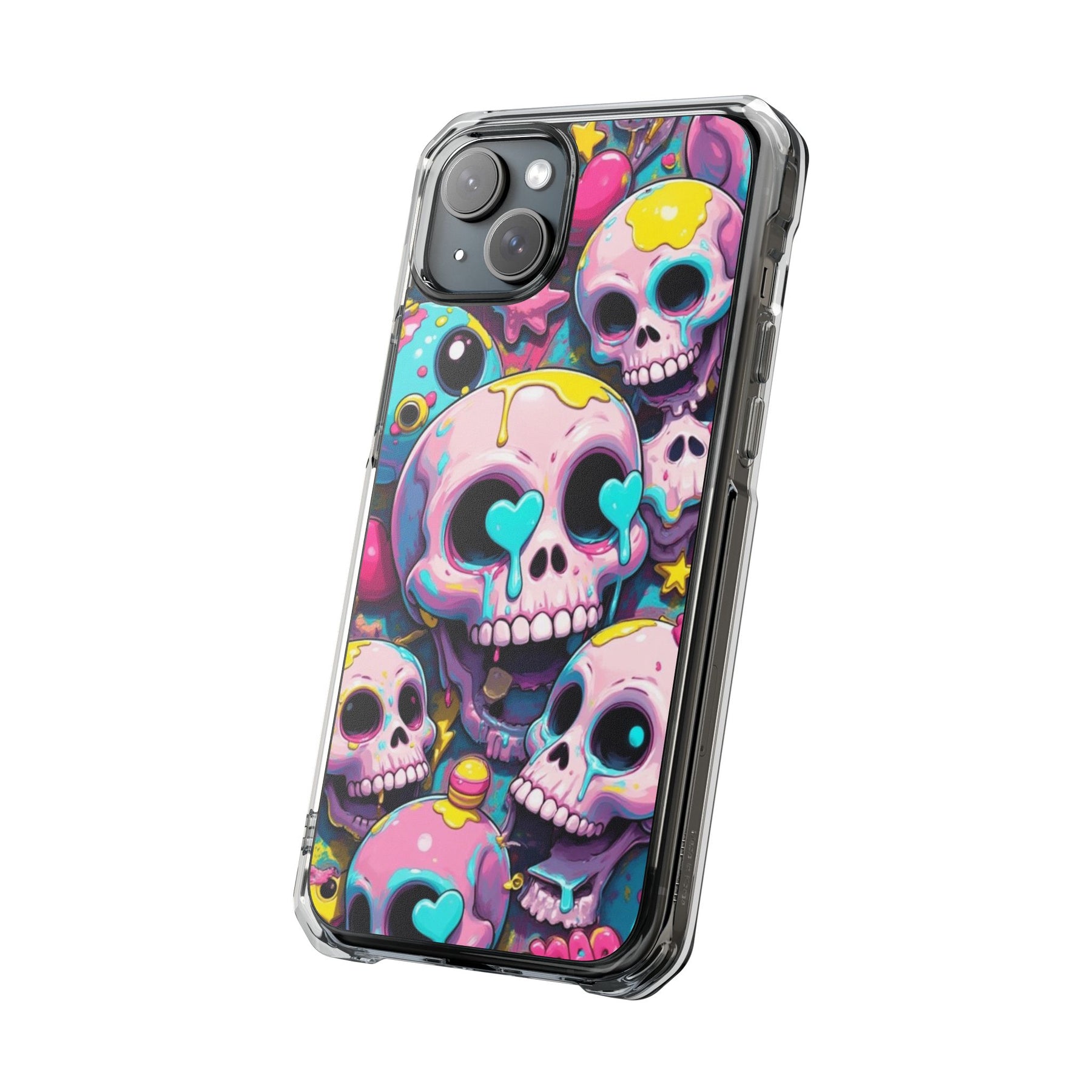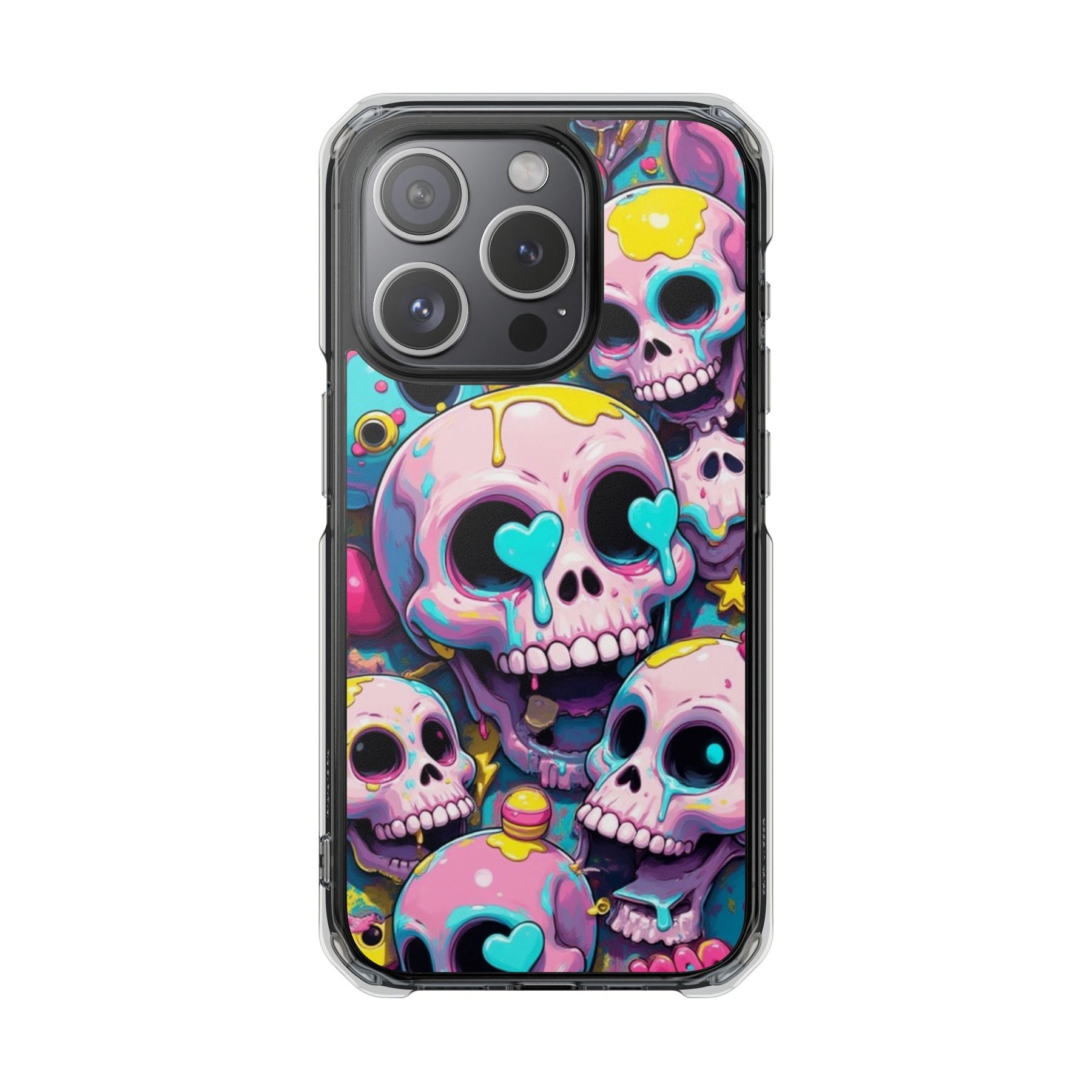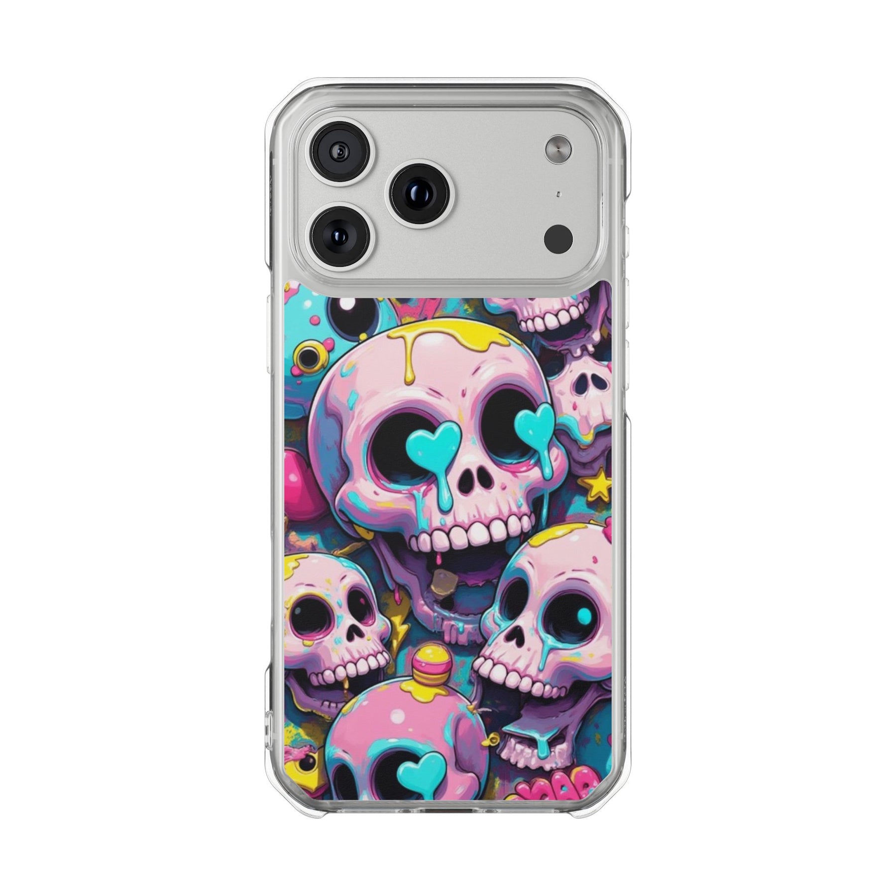 スマホを守るだけじゃ物足りない。カラフルKAWAIIスカルが、毎日を一気にポップにする MagSafe対応クリアマグネットiPhoneケースです。