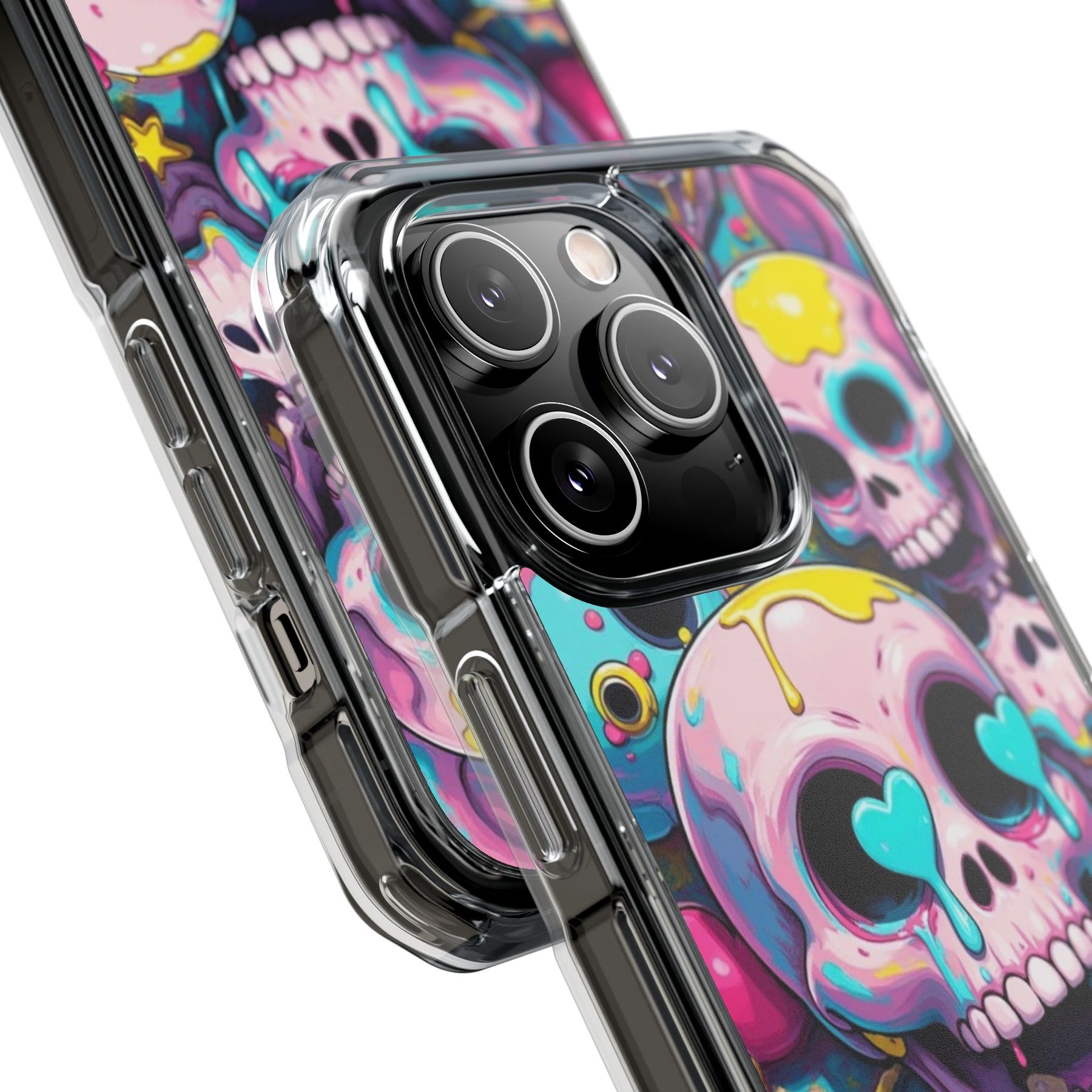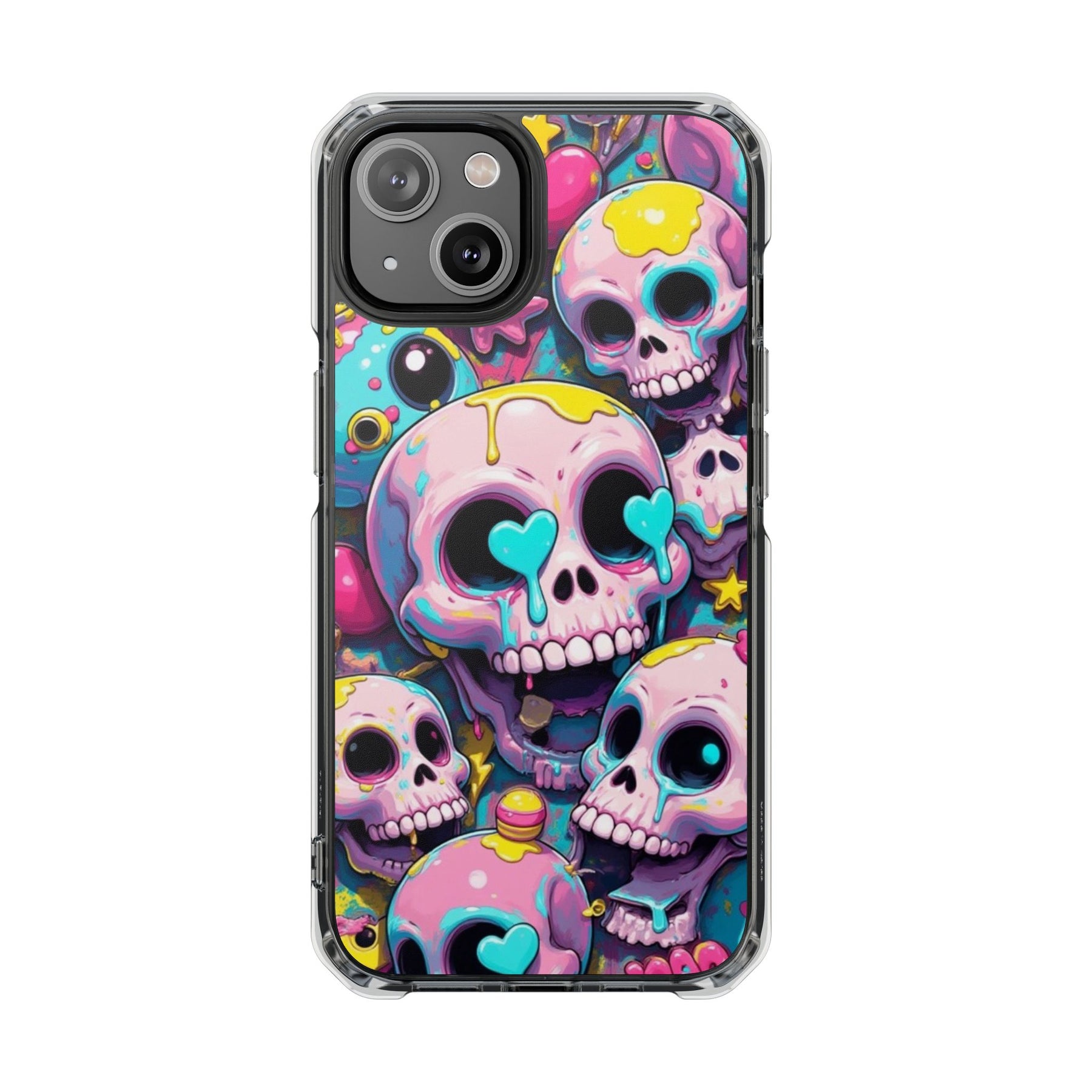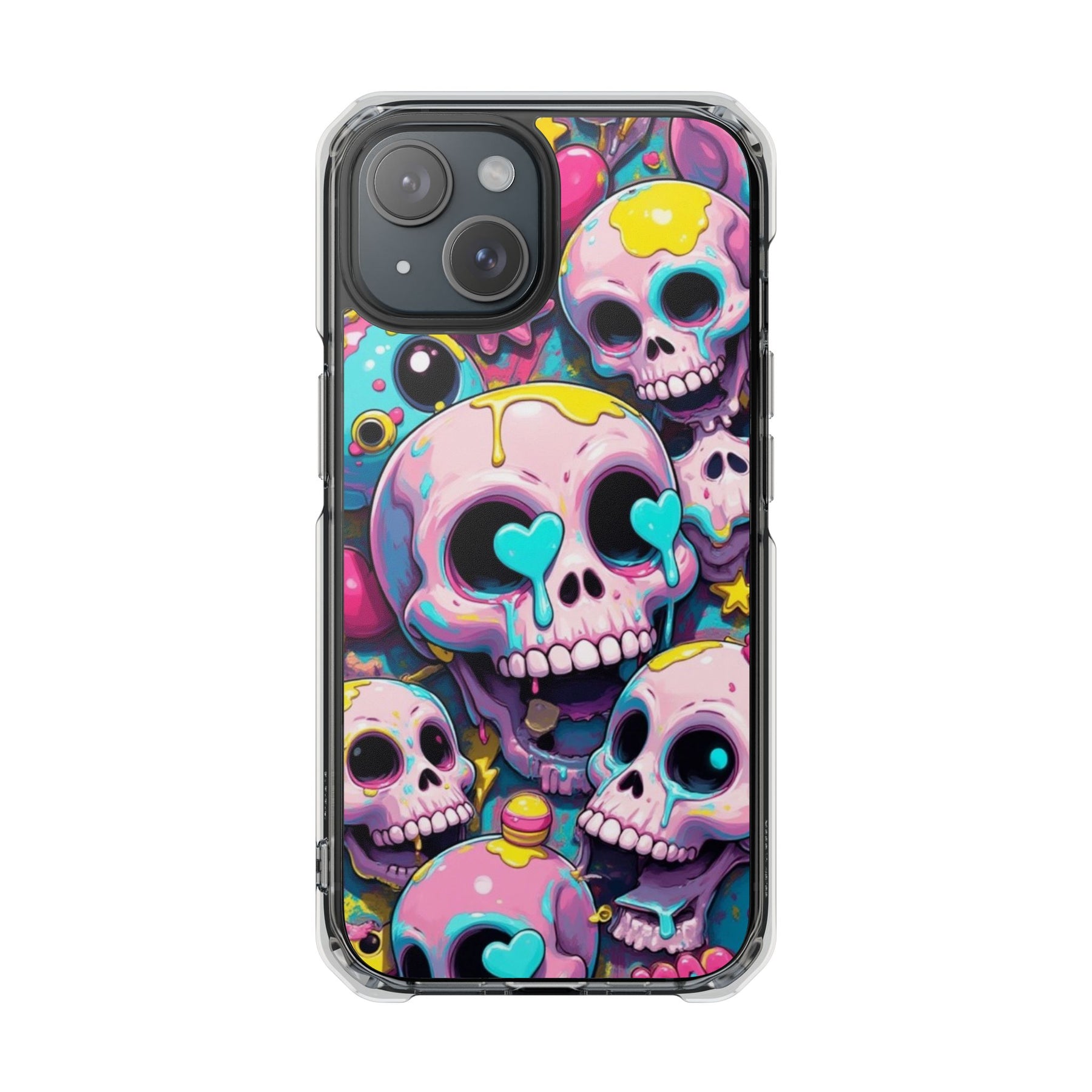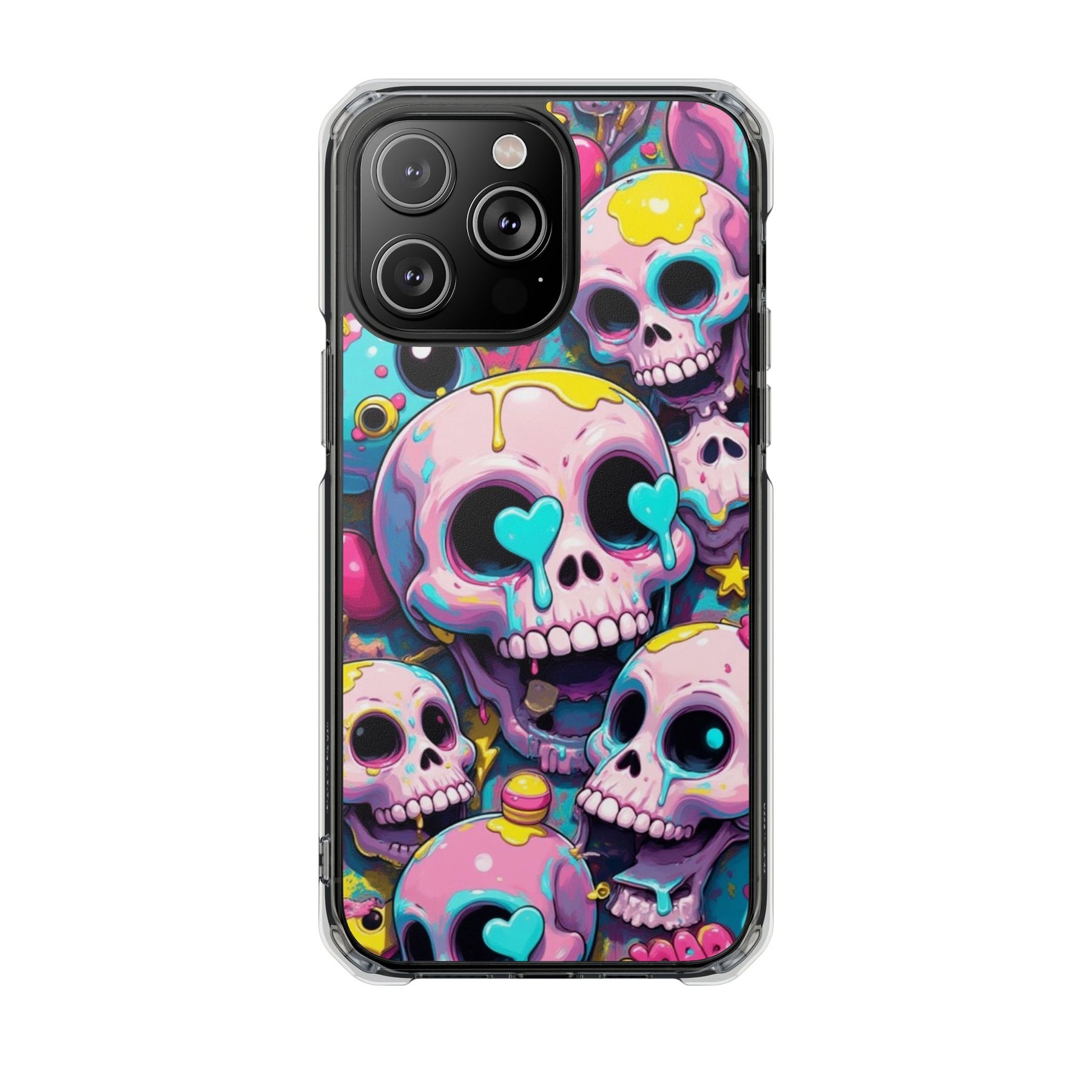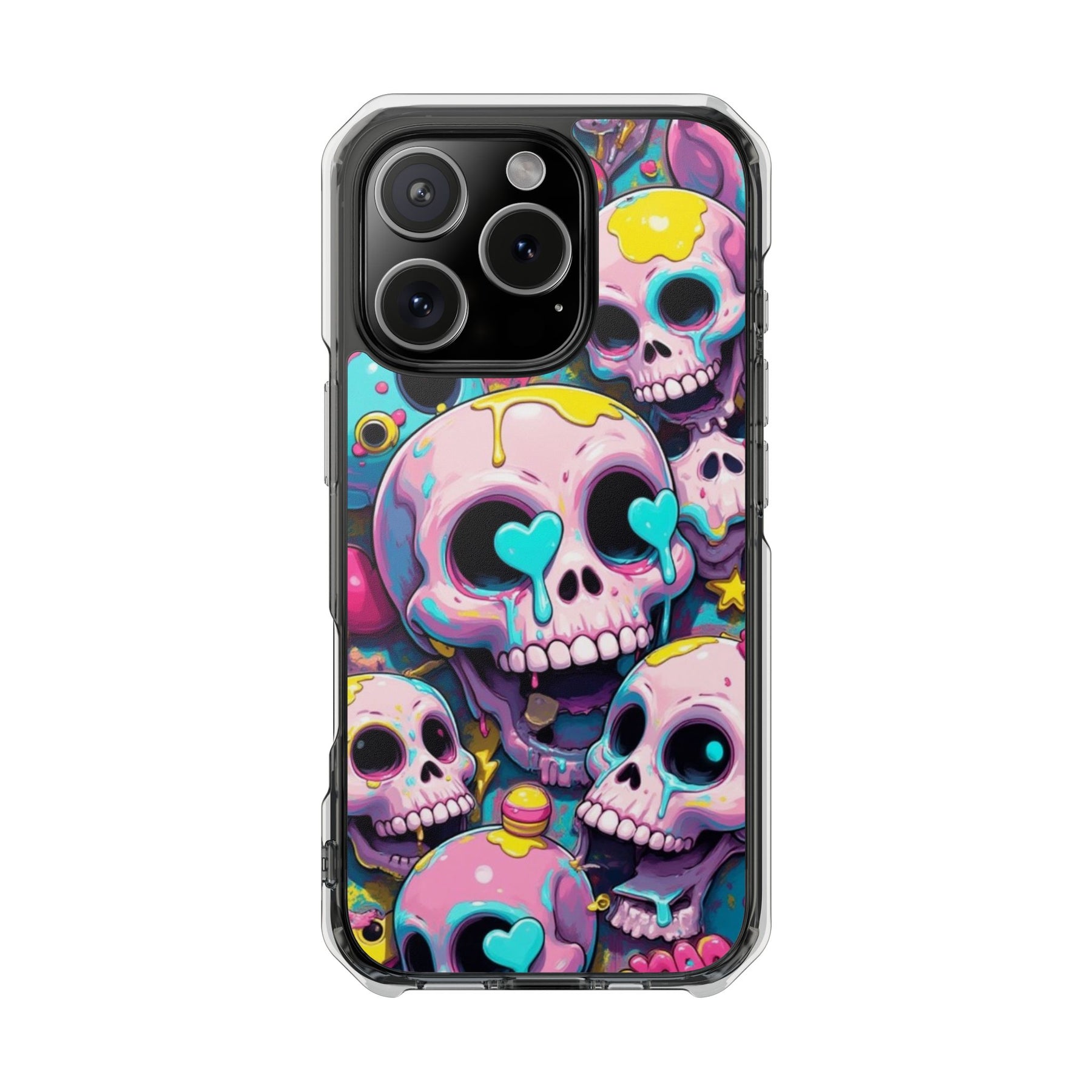 スマホを守るだけじゃ物足りない。カラフルKAWAIIスカルが、毎日を一気にポップにする MagSafe対応クリアマグネットiPhoneケースです。