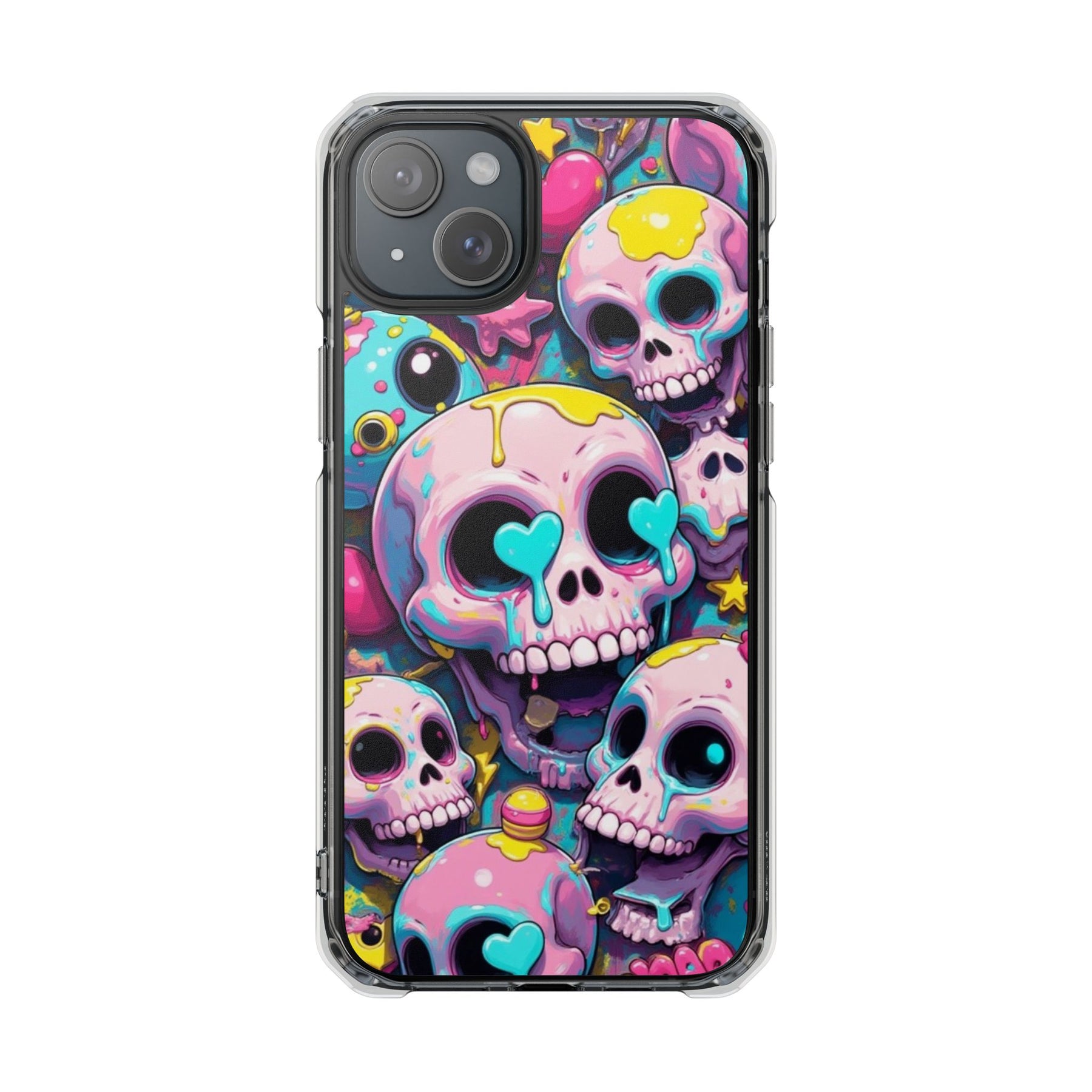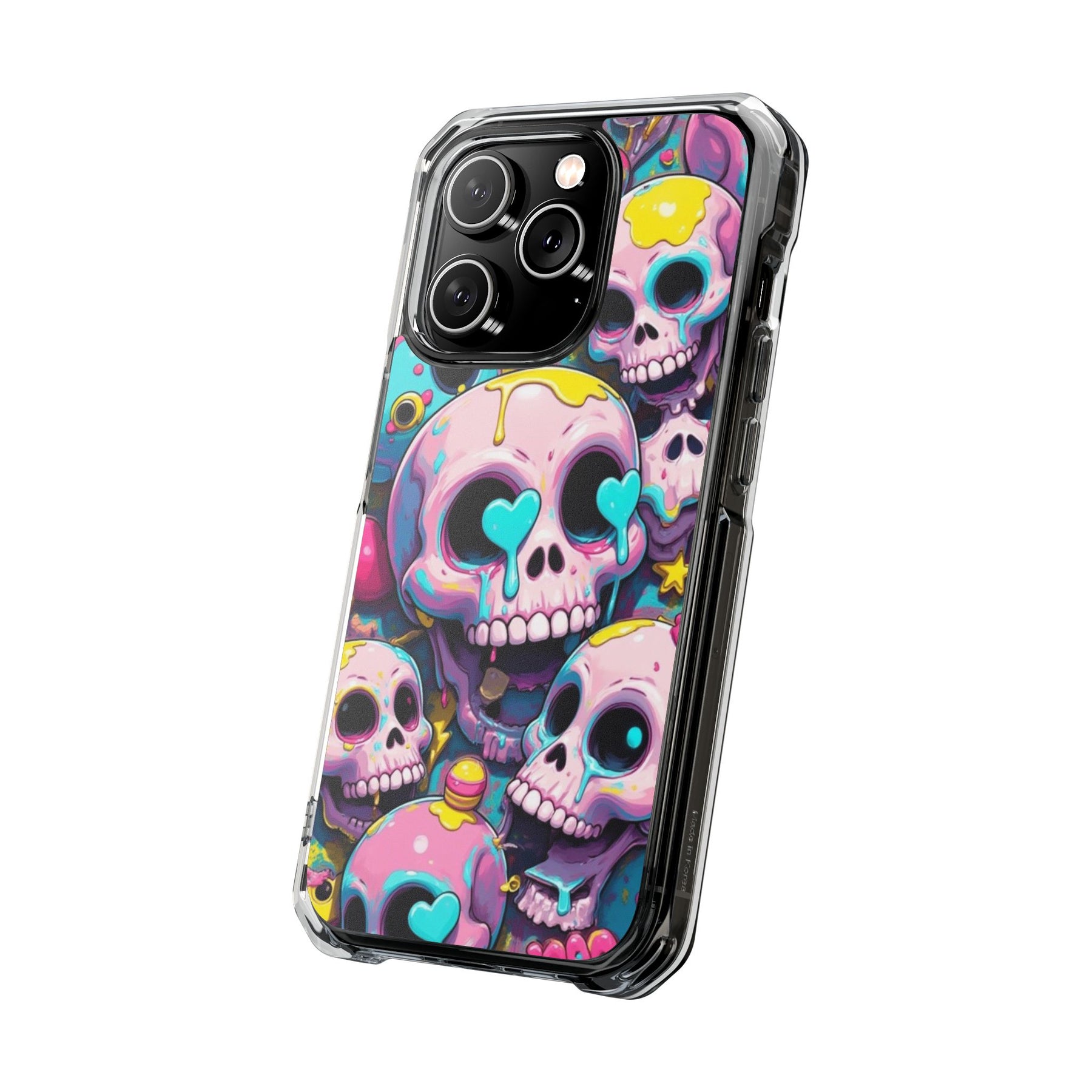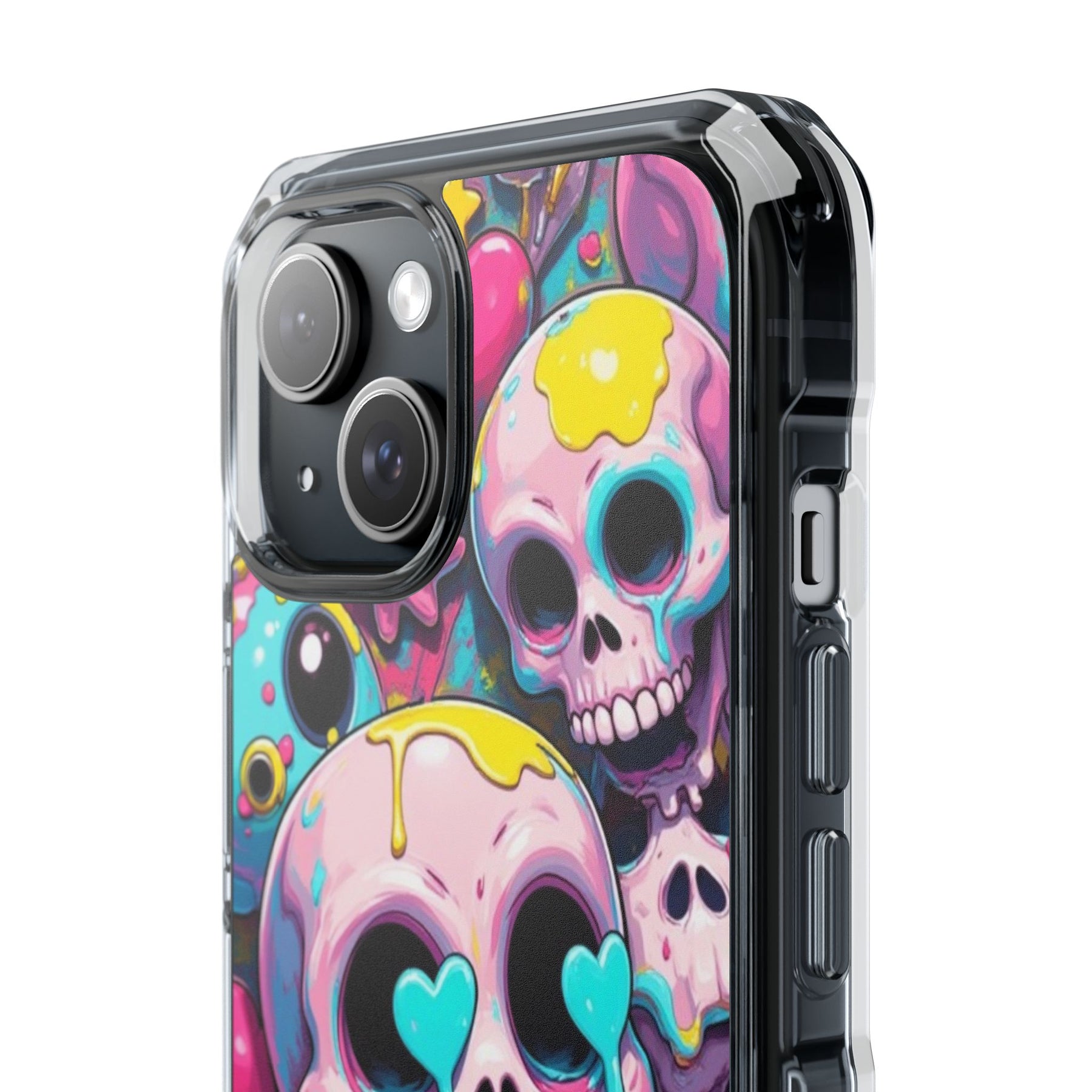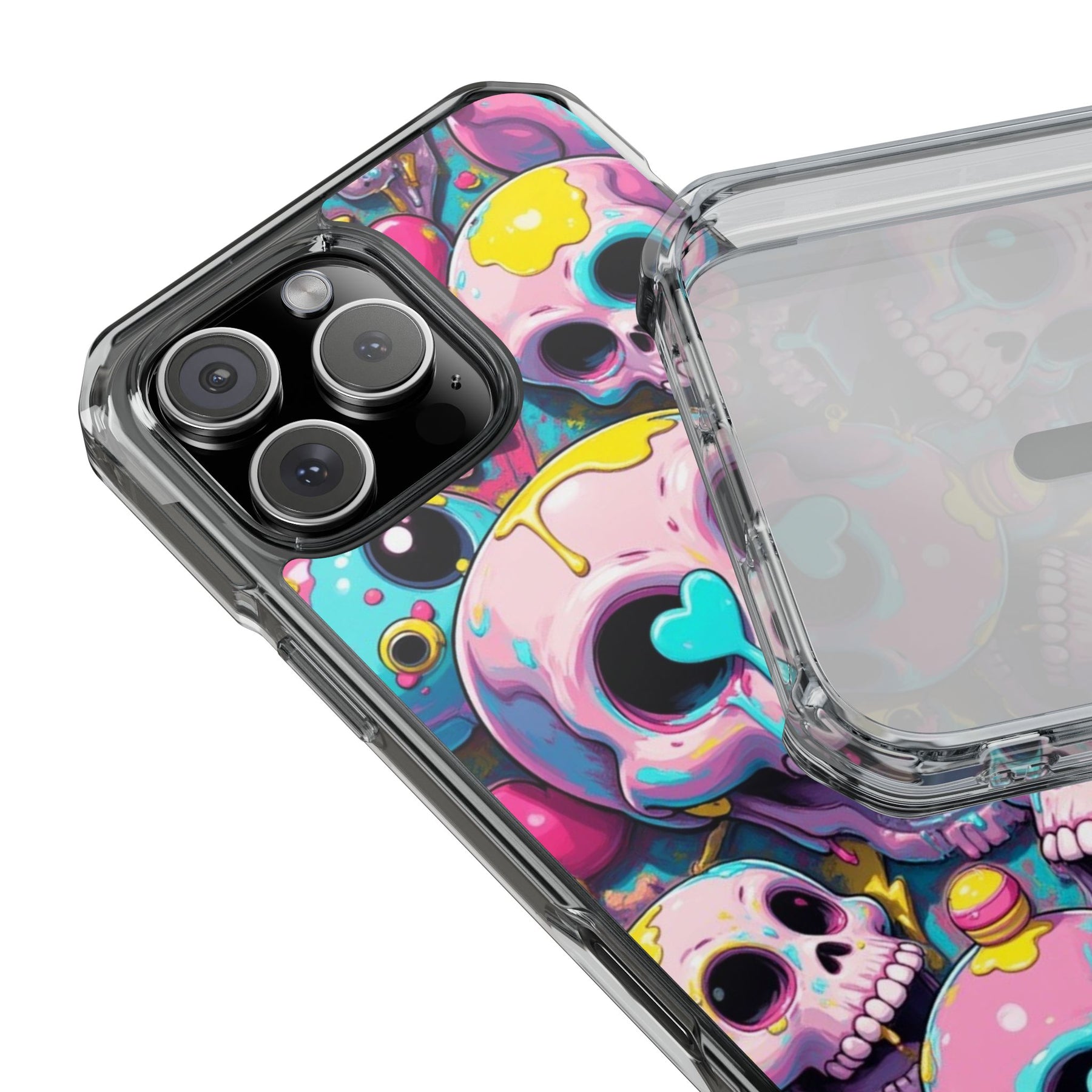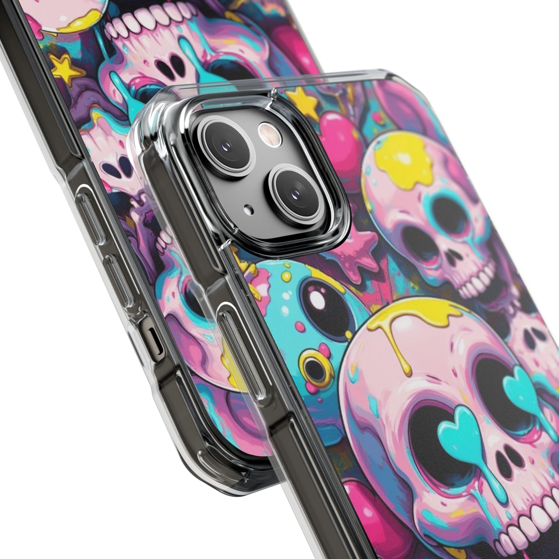 スマホを守るだけじゃ物足りない。カラフルKAWAIIスカルが、毎日を一気にポップにする MagSafe対応クリアマグネットiPhoneケースです。