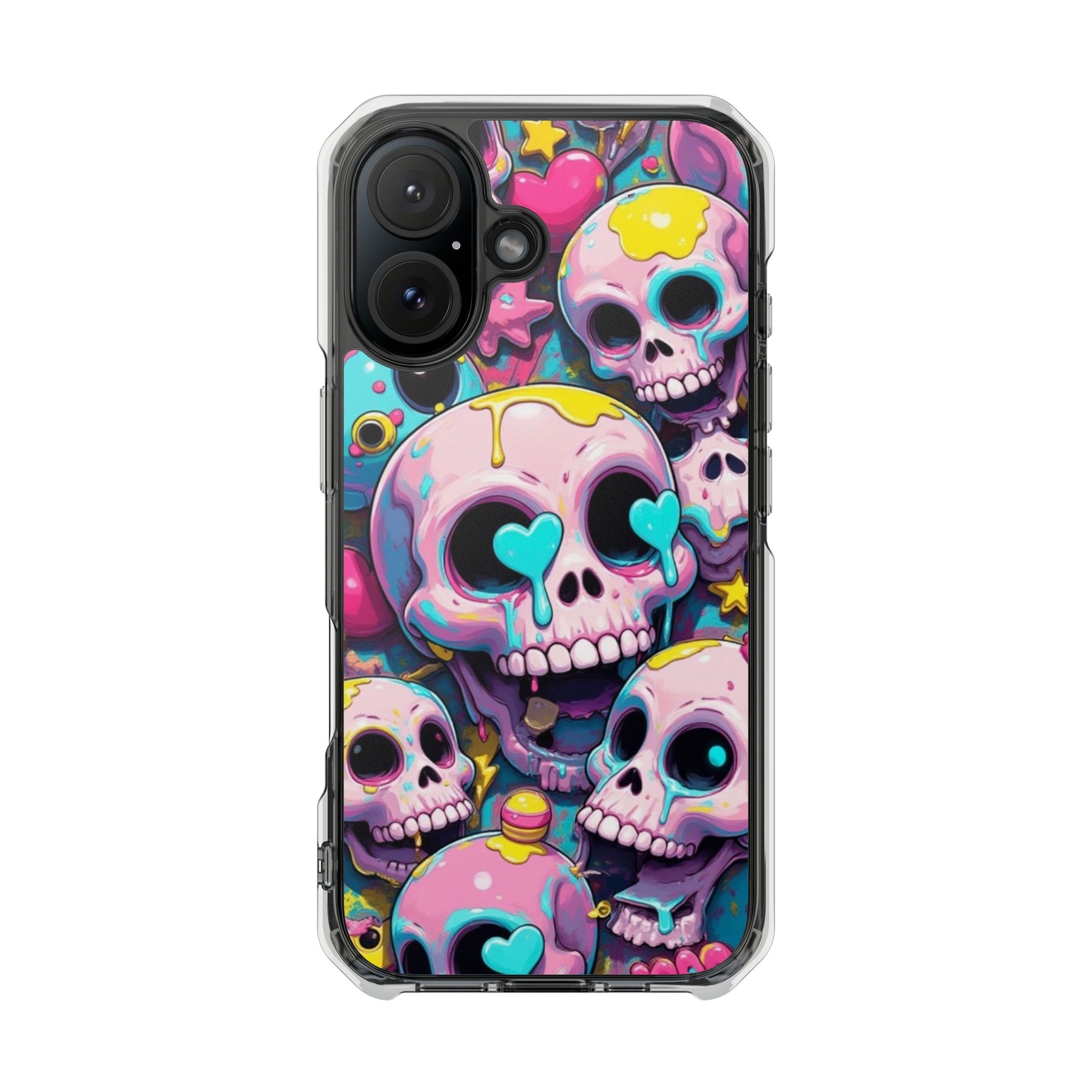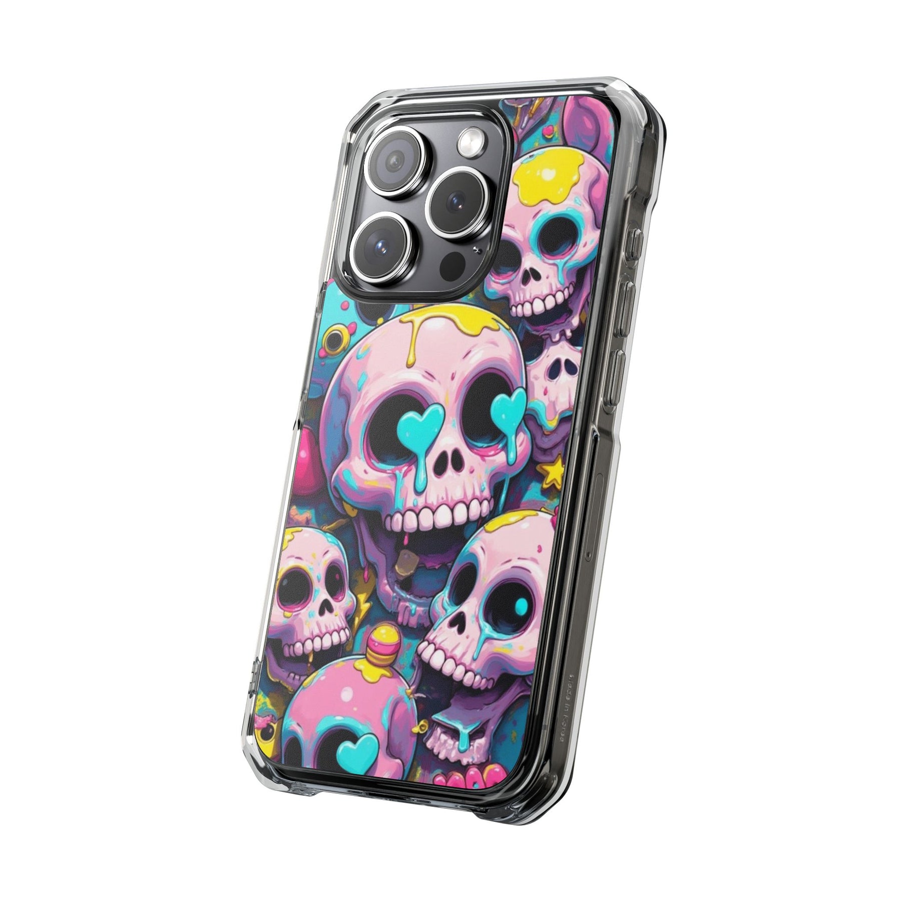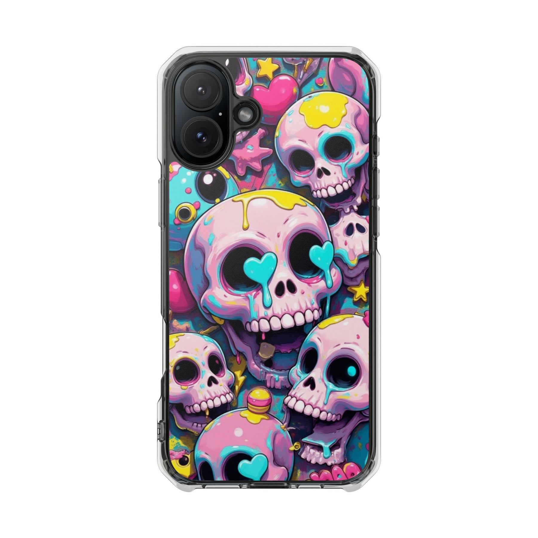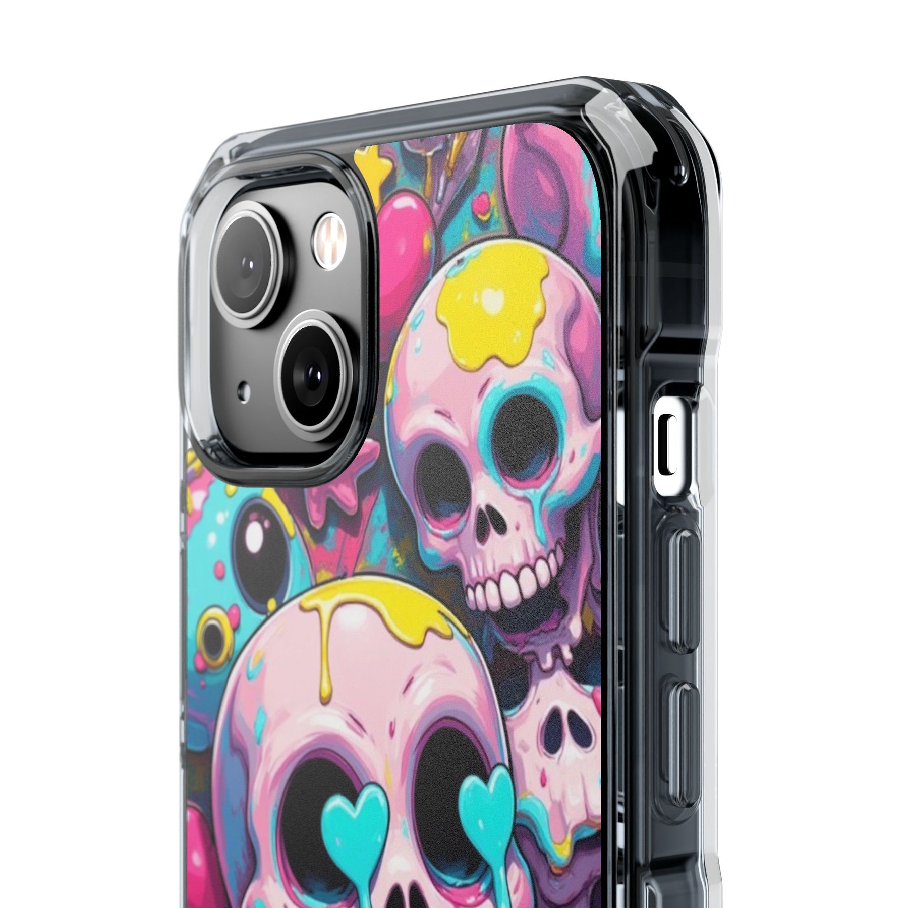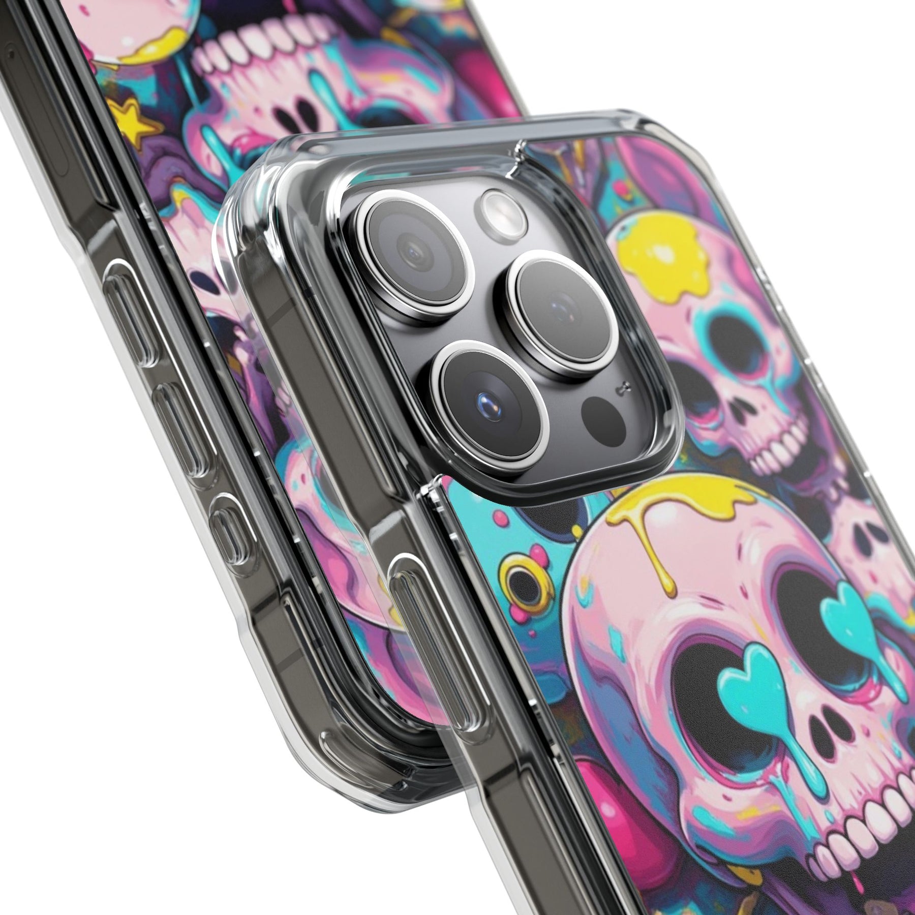 スマホを守るだけじゃ物足りない。カラフルKAWAIIスカルが、毎日を一気にポップにする MagSafe対応クリアマグネットiPhoneケースです。