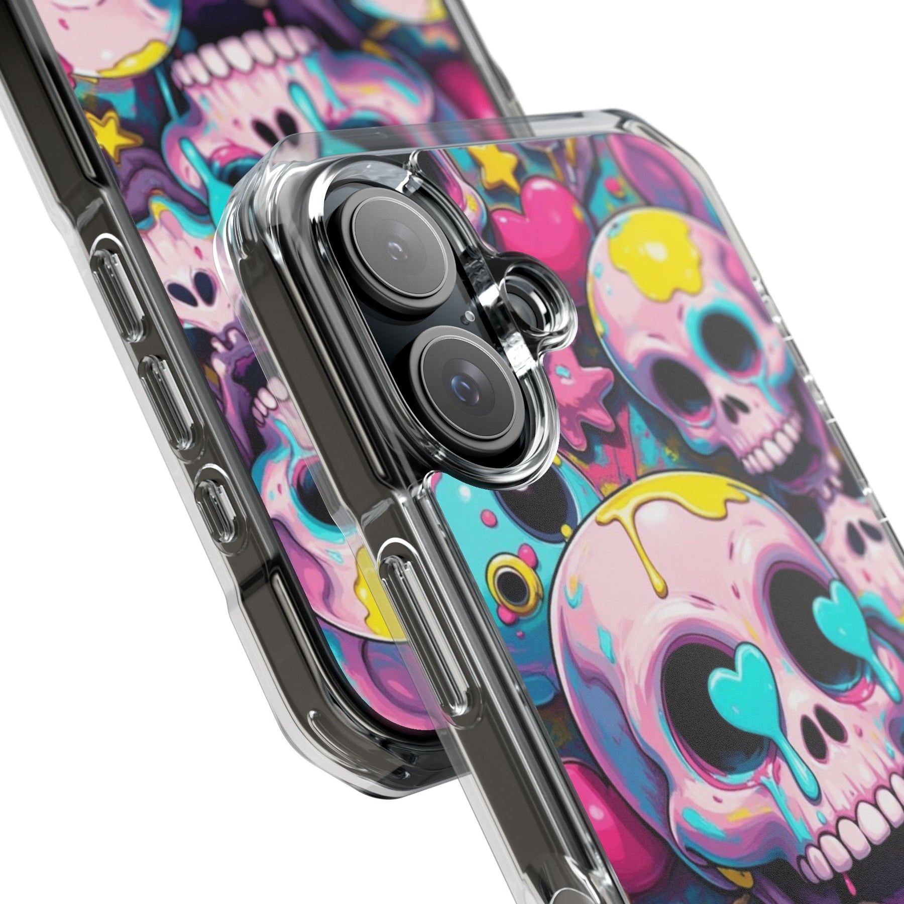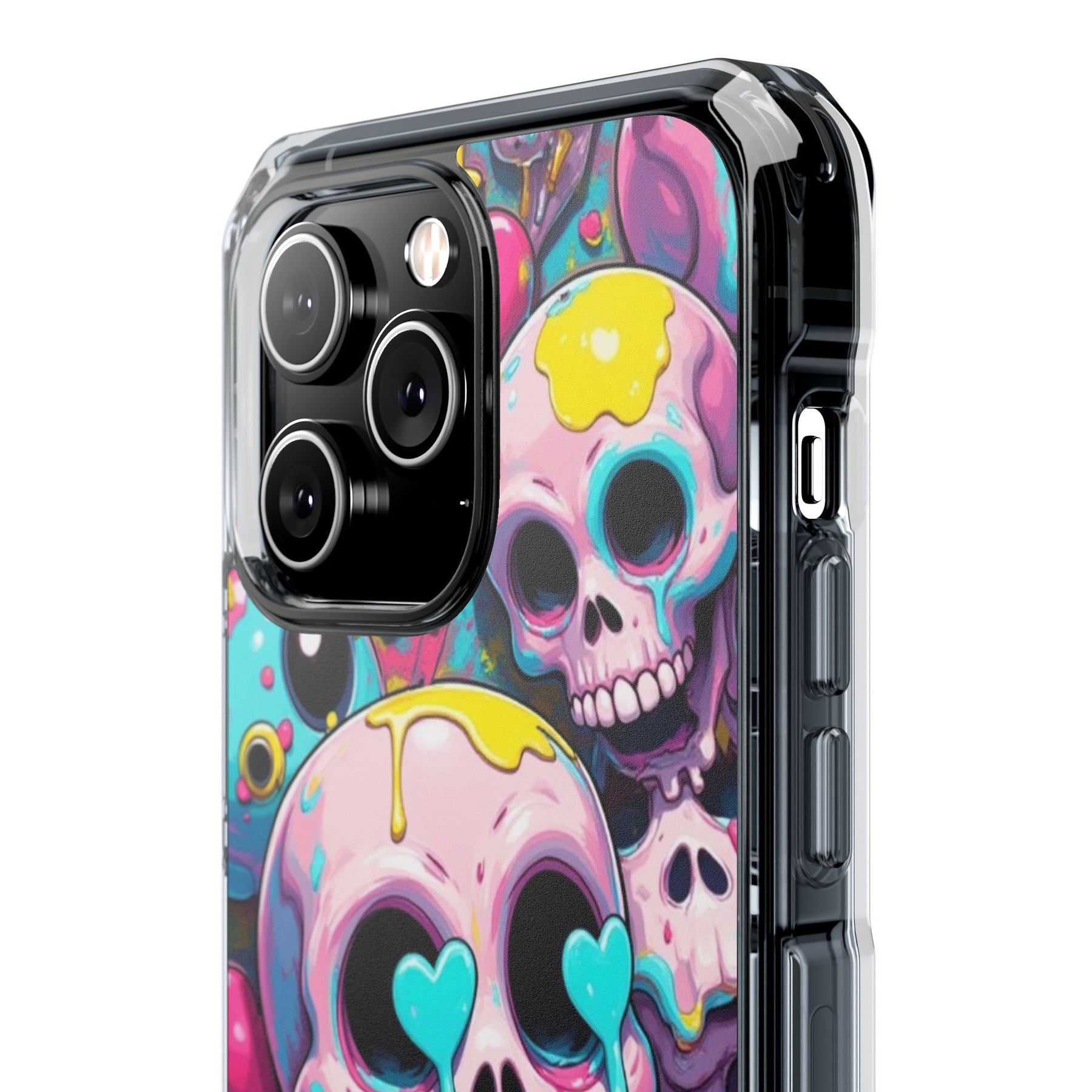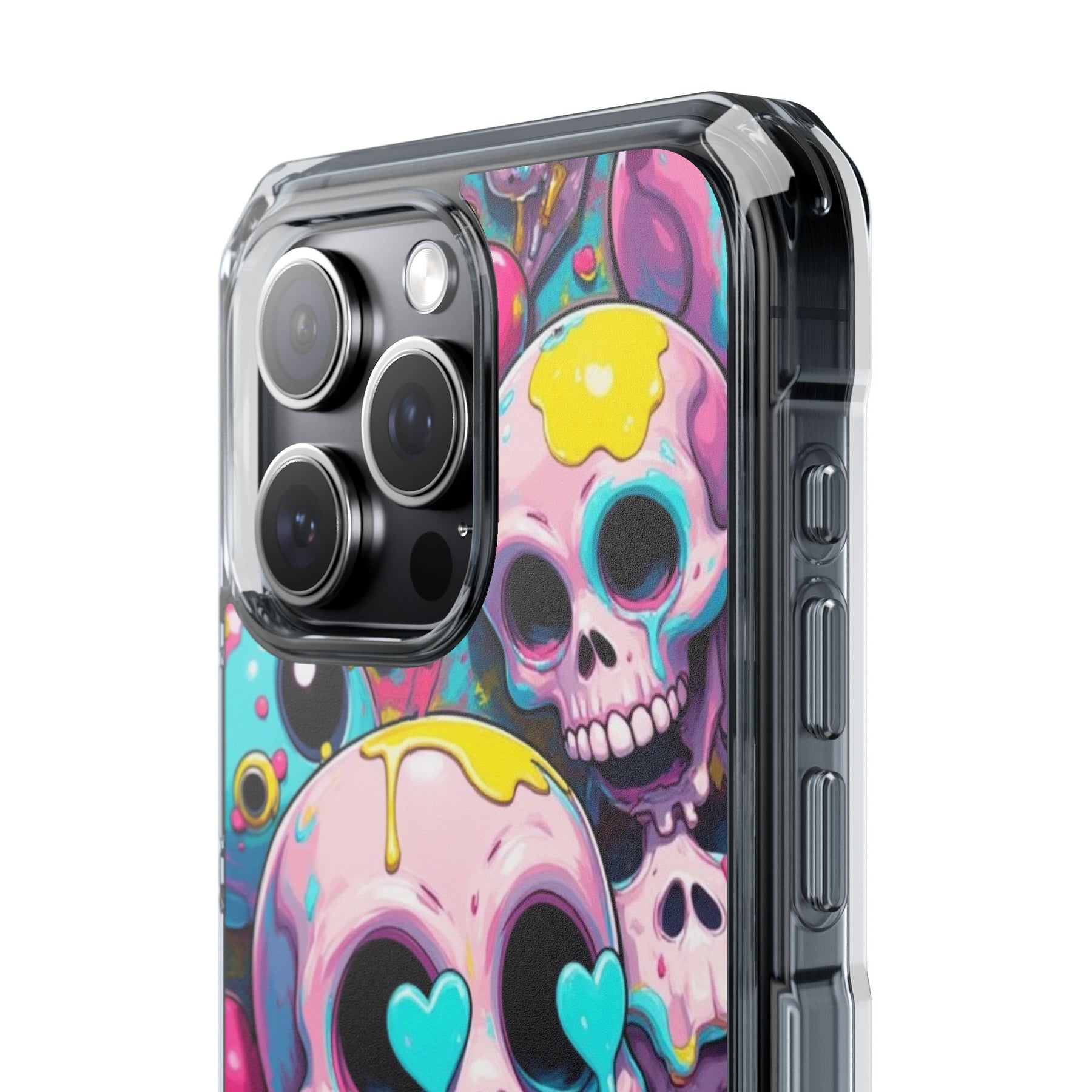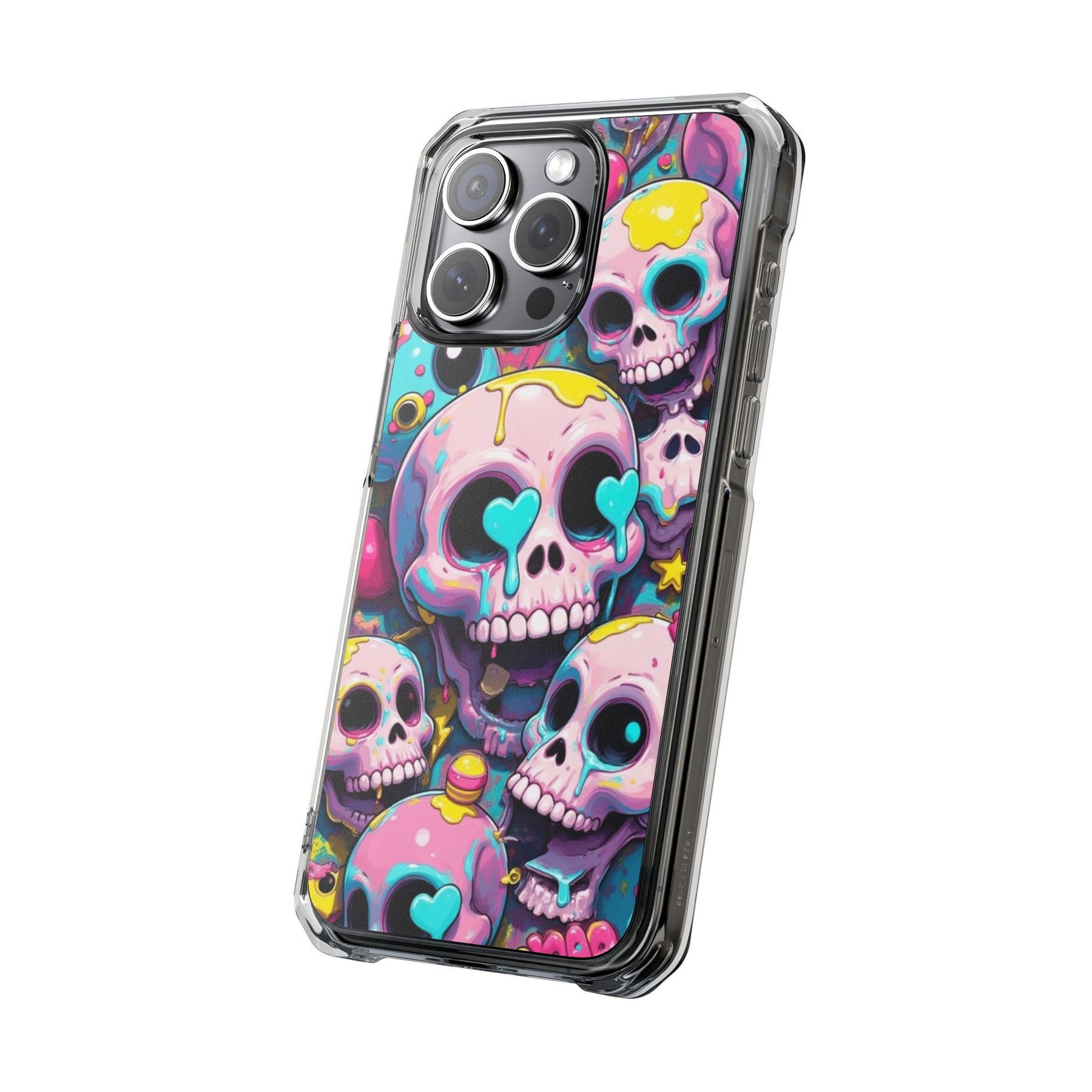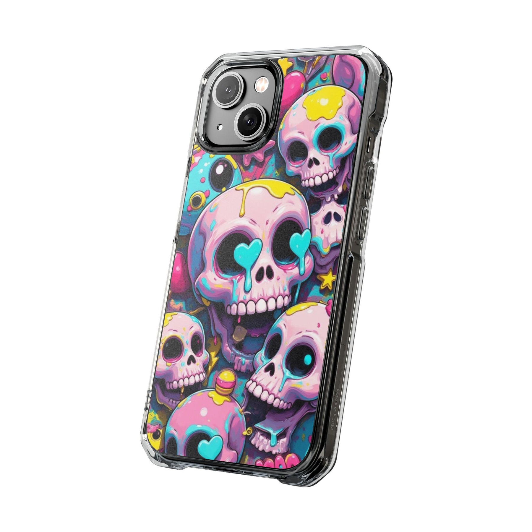 スマホを守るだけじゃ物足りない。カラフルKAWAIIスカルが、毎日を一気にポップにする MagSafe対応クリアマグネットiPhoneケースです。