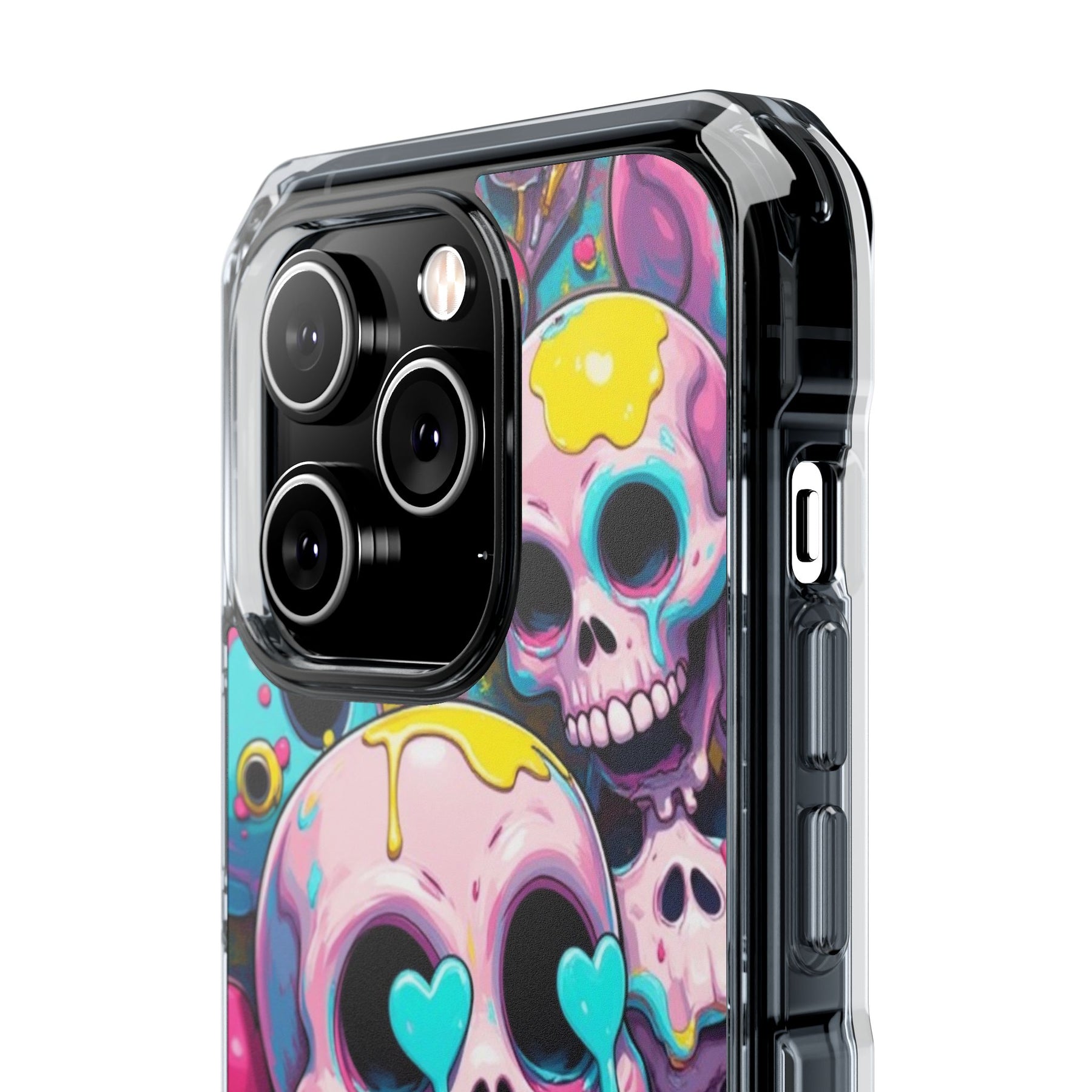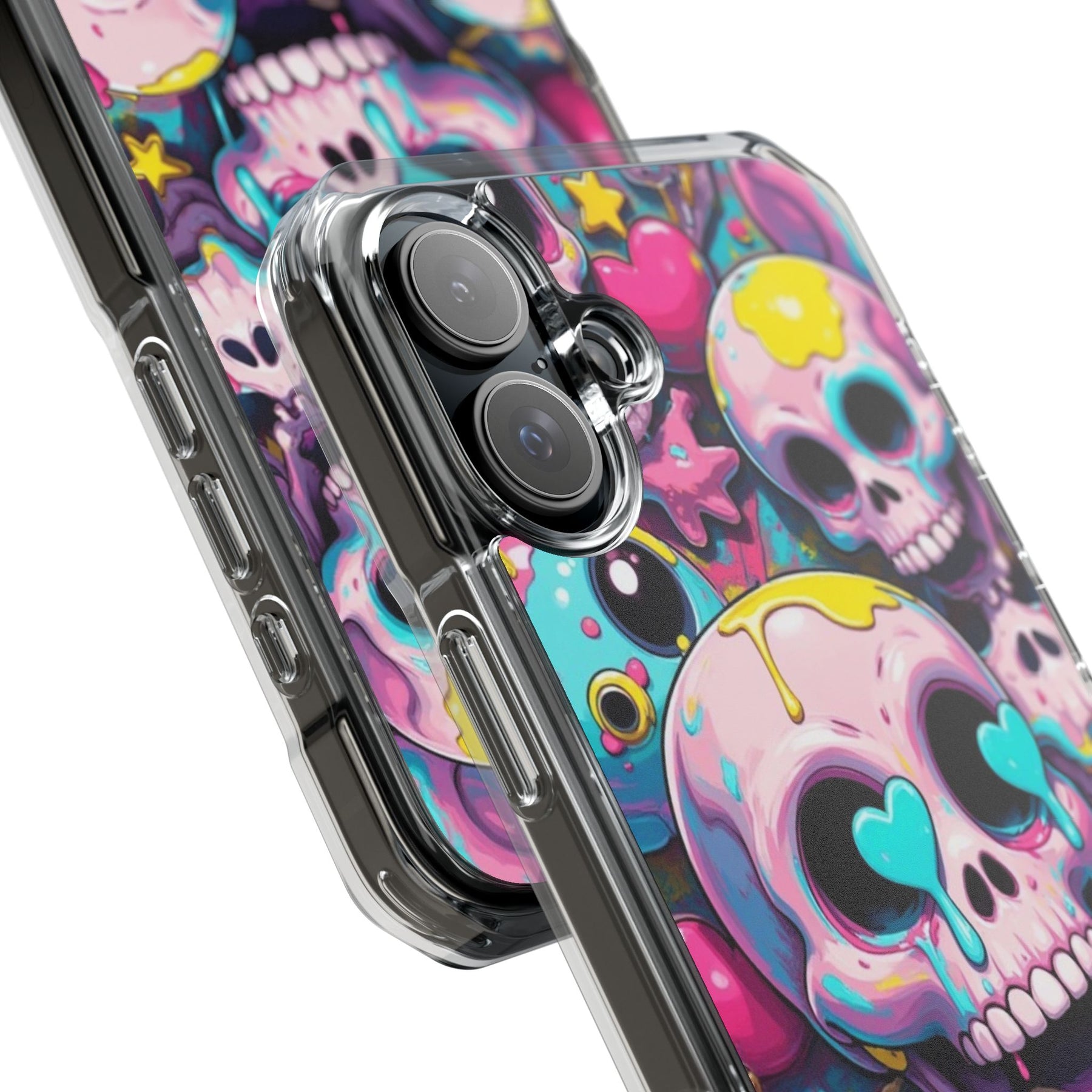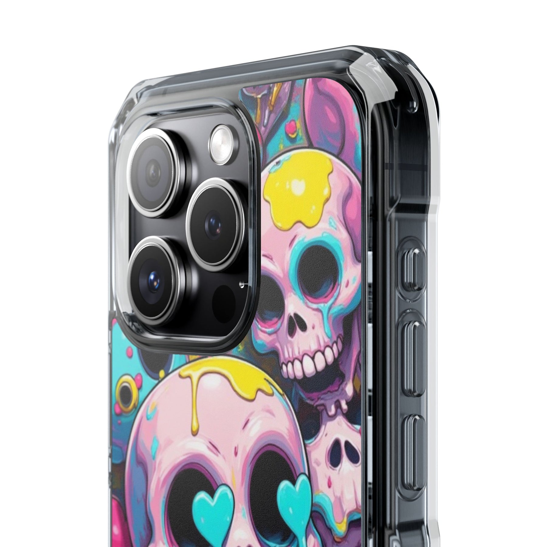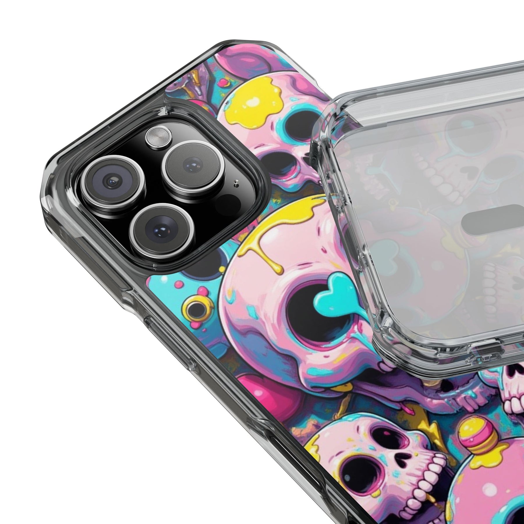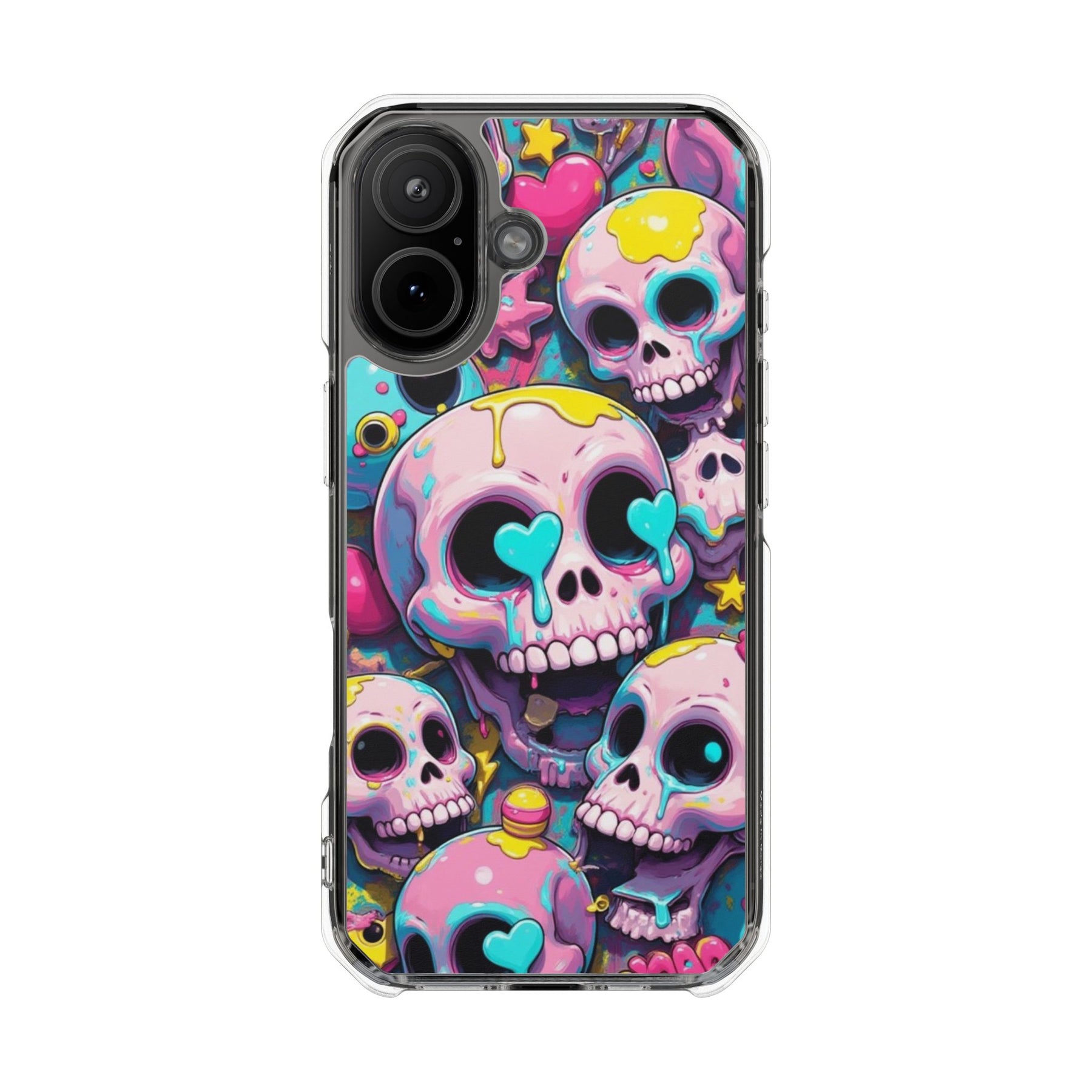 スマホを守るだけじゃ物足りない。カラフルKAWAIIスカルが、毎日を一気にポップにする MagSafe対応クリアマグネットiPhoneケースです。