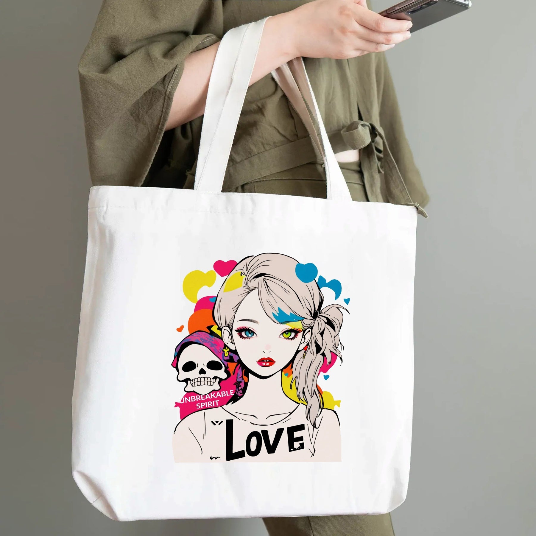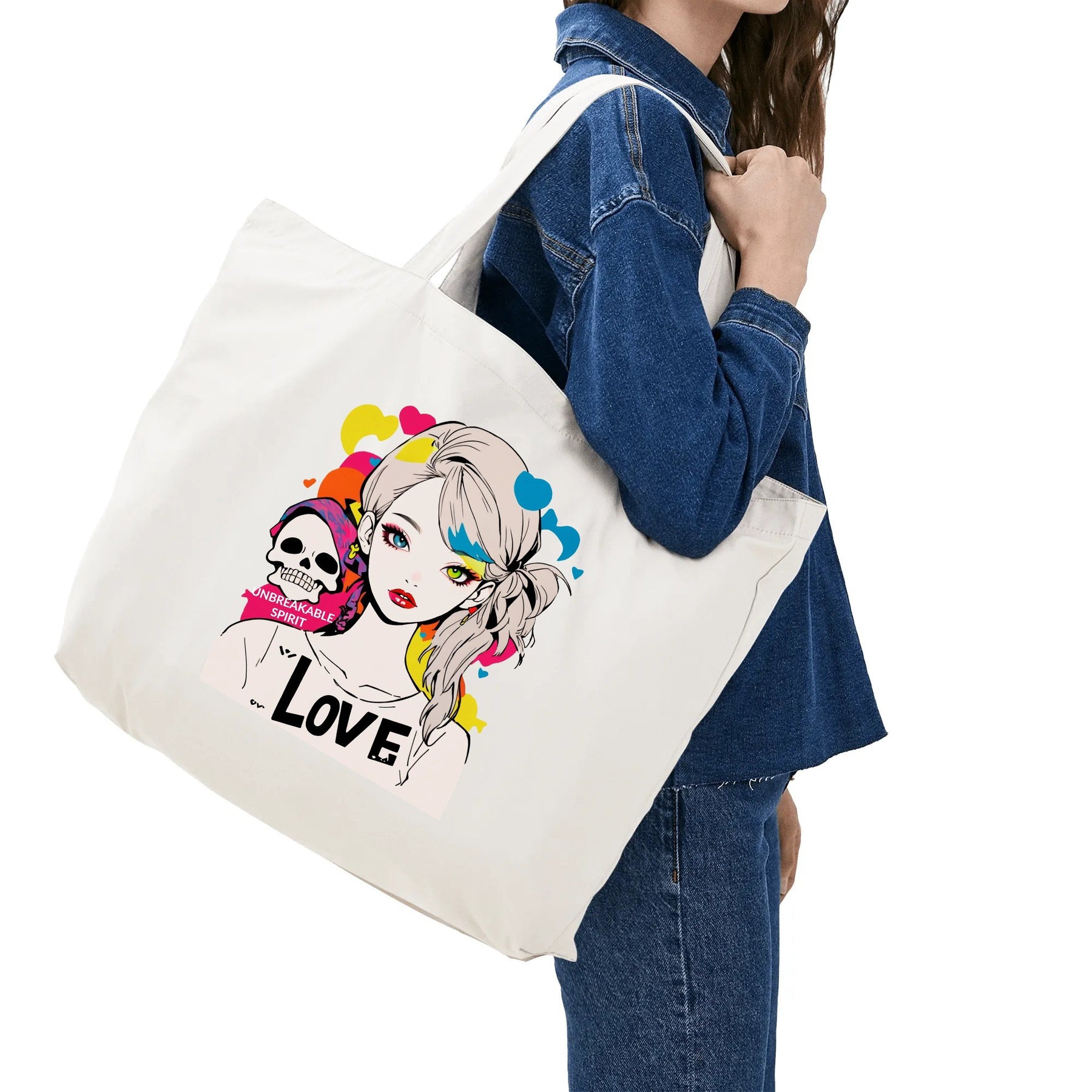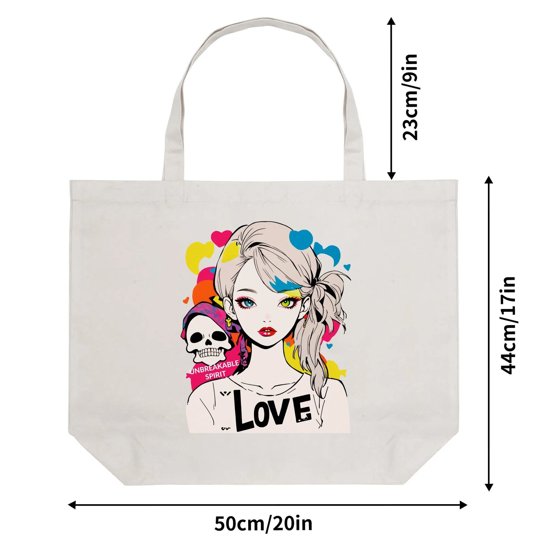 Made from 100% cotton, this clean white tote pairs a soft, eco-friendly feel with reinforced stitching and sturdy handles. The single-sided LOVE GIRL print brings a pop-art vibe, while its spacious design fits books, daily essentials, and more—perfect for shopping, commuting, and travel.